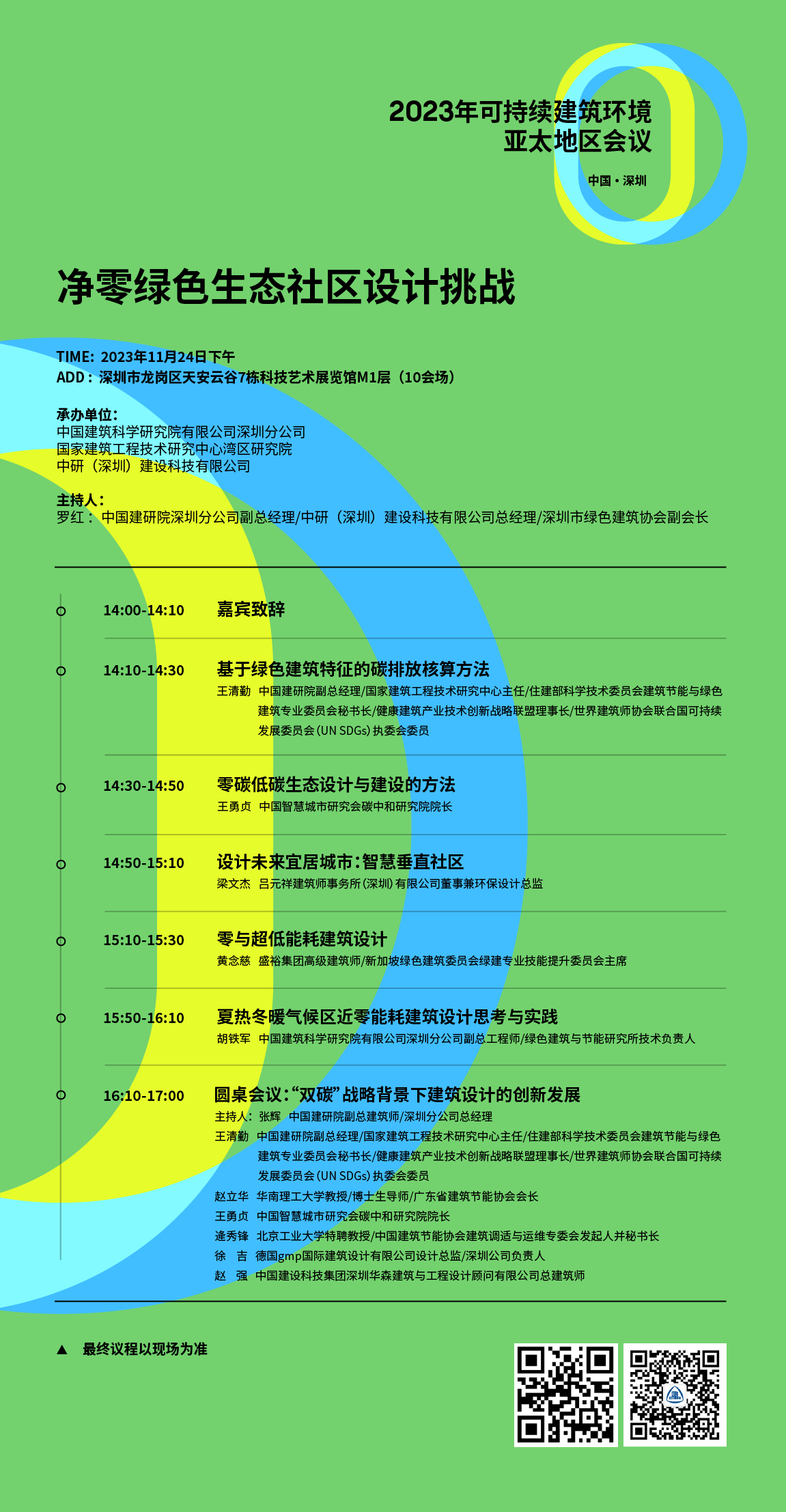 中國建研院深圳分公司助力可持續建筑環境亞太地區會議,承辦“凈零綠色生態社區設計挑戰”主題論壇即將開始