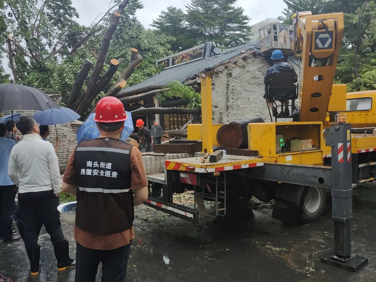 ?臺風影響期間,專項工作組密切跟蹤臺風路徑與氣象預警信息,第一時間與龍崗區、龍華區、光明區住建局及園山、平湖、新橋、沙井、玉塘等街道建立房屋安全應急聯絡機制,確保風險信息實時傳遞、處置指令快速落地。值守人員全員在崗在位,根據隱患排查臺賬,建立隱患專人盯防機制,動態更新風險變化情況。
