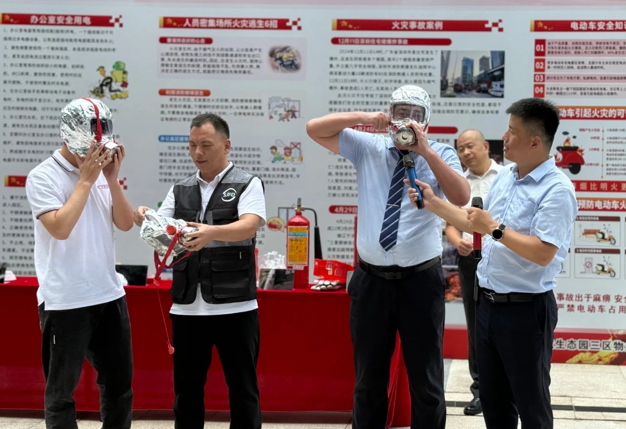 ?聯合辦公園區物業開展2025年消防演習,現場模擬高層辦公樓火災、地震等突發意外情況下的緊急疏散、自救逃生。學習滅火器、防毒面具、自動體外除顫器(AED)等消防急救設施的正確使用方法,有效提高員工在緊急情況下的應急自救能力。