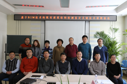 2月22日,由我院建筑工程檢測中心(以下簡稱“院檢測中心”)承擔的院應用技術研究課題“基于BIM的既有建筑結構檢測鑒定關鍵技術研究和應用”在北京順利通過驗收。本次驗收委員會由北京市住房和城鄉建設委員會李自強教授級高工、北京市軌道交通設計研究院蘇立勇教授級高工、國家工業建構筑物質量安全監督檢驗中心張文革教授級高工、海軍海防工程技術管理室姜振春高工、北京科技大學土木工程系楊潤林教授、中國建筑業協會王承瑋高工、北京大龍建設集團有限公司劉繼紅高工組成,李自強擔任主任委員。我院科技處張靖巖副處長、院檢測中心王霓主任,課題驗收專家及課題組成員等共14人參加了會議。